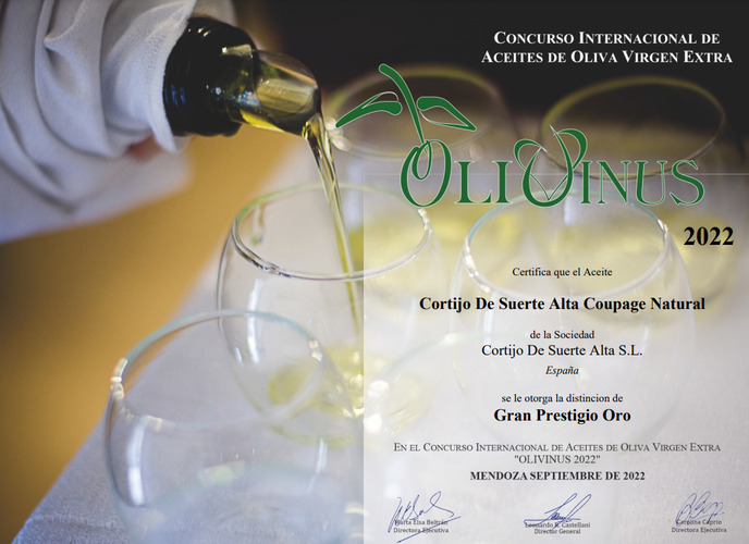 Nuestro Coupage Natural ha sido galardonado con Gran Prestigio Oro en Olivinus Argentina 2022.